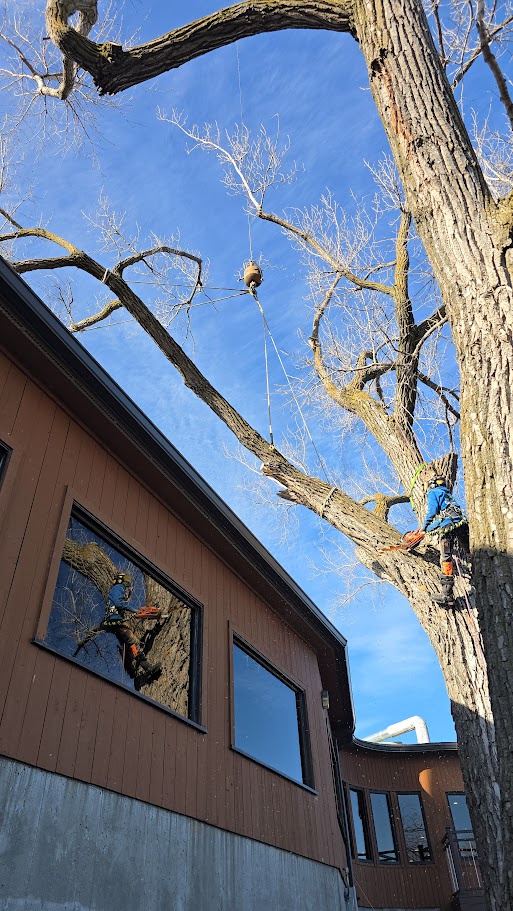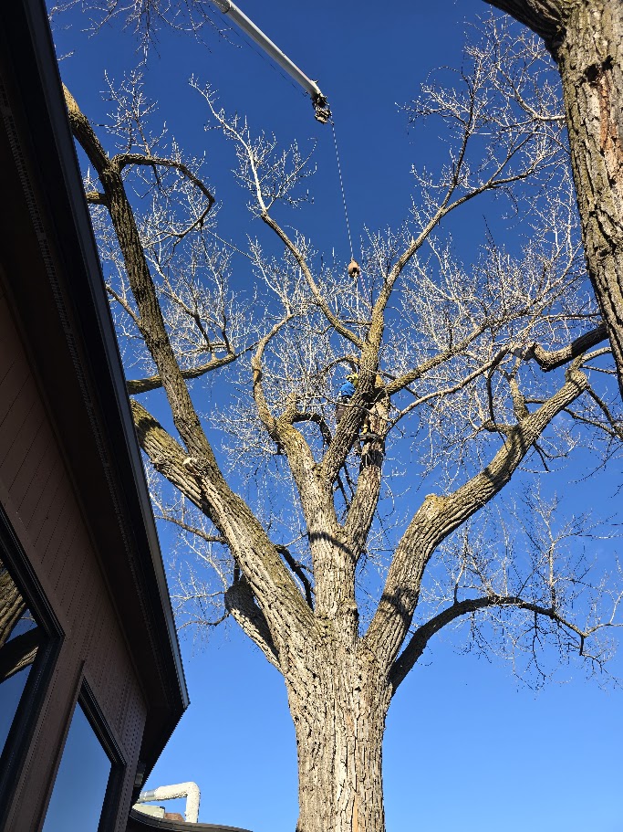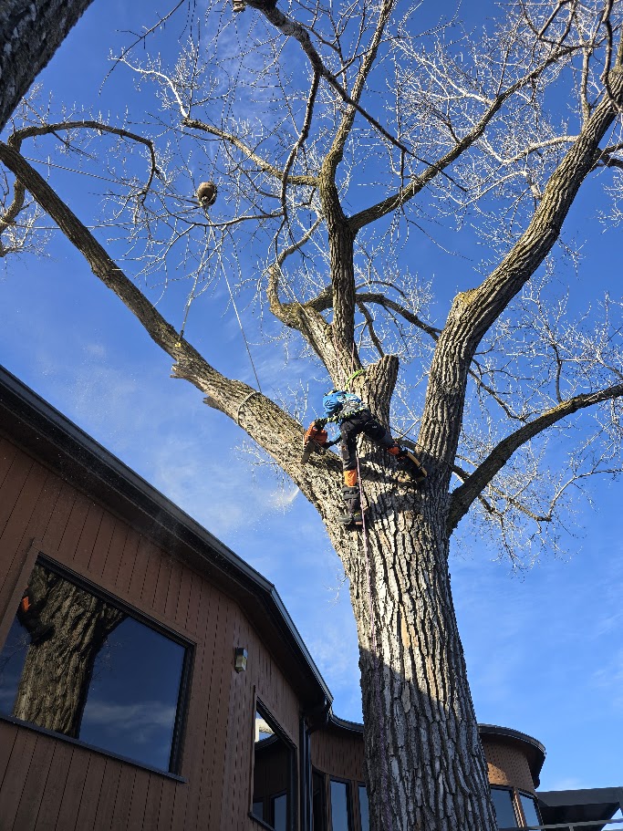 For the two massive cottonwoods, we brought in a 110-ton crane along with a professional climber and advanced rigging techniques.