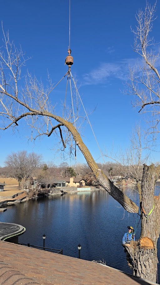 Large cottonwoods near lakes and high-use areas can become significant liabilities. Deadwood, structural defects, and sheer mass make removal a serious operation — one that requires:
